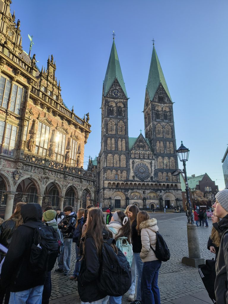 „Moin Bremen!“ hieß es am Montag bei einem gemeinsamen Ausflug in die Hansestadt. Mit einer Stadtführung, die den Marktplatz, die Böttcherstraße und das Schnoorviertel umfasste, konnten die Schülerinnen und Schüler einen guten Eindruck von Bremen gewinnen. Begleitet wurde die Fahrt von Frau Böning-Spohr und Herrn Rohlfing. Am Dienstag fand das Kunstprojekt „Postkarten der Freundschaft“ anlässlich des 60-jährigen Bestehens der Städtepartnerschaft zwischen Bückeburg und Sablé statt. Alle Teilnehmenden gestalteten eine persönliche Postkarte, auf denen sie die deutsch-französische Freundschaft und Städtepartnerschaft zwischen Bückeburg und Sablé kreativ zum Ausdruck brachten. Die dabei entstandenen Karten sollen demnächst als Gesamtkunstwerk in der Schule ausgestellt werden und den Austausch repräsentieren. Unser Dank gilt Frau Laue, die das Projekt begleitet hat.