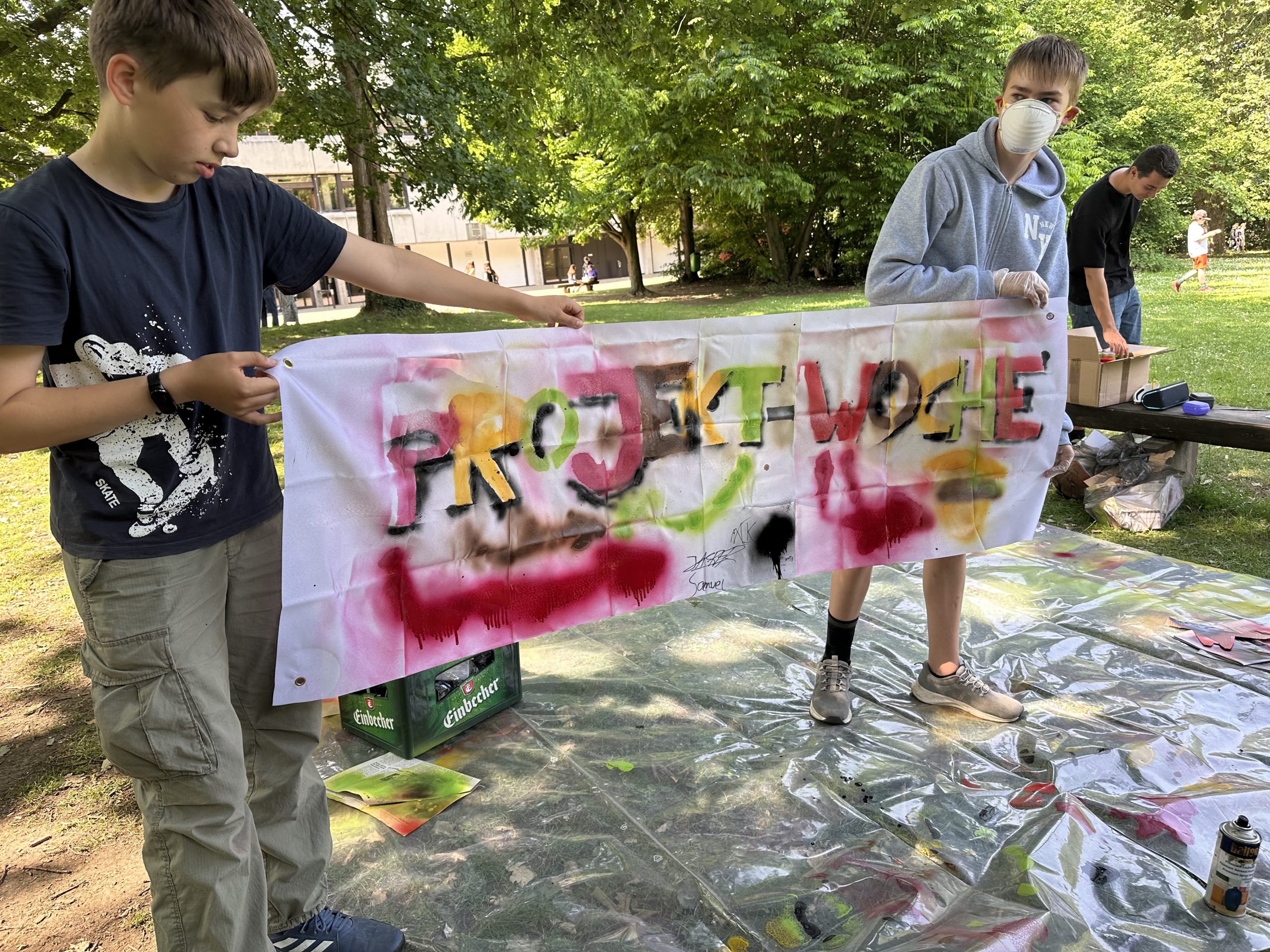 Also wurde gekocht, gebacken, getanzt, gebastelt, gesägt, geangelt, gegrillt, geklebt, gebohrt, gesprüht, geschnitten, gewandert, gedreht, gelesen, auch ferngesehen und Fuß-, Basket- und Volleyball gespielt, Selbstverteidigung geübt und mentale Gesundheit gefördert, ein Escaperoom erstellt, musiziert und Dart gespielt, es wurden Brettspiele gespielt und selbst erfunden, Murder Mystery-Geschichten geschrieben. Die Themen der Projekte waren so vielfältig wie die Schüler, die sie angeboten und angewählt hatten. Einige zeigten durchaus Nähe zu Schulfächern, andere waren gänzlich aus dem Schulalltag gerissen und „mal etwas ganz anderes als sonst“. Während der Projektwoche herrschte daher in der Schule eine ganz besondere Atmosphäre: Kreativität lag in der Luft und Schülerinnen und Schüler, die sich vorher kaum kannten, arbeiteten intensiv zusammen. So wuchsen im Laufe der Woche neue Gruppen abseits der üblichen Jahrgänge zusammen. Viele Projekte waren so im Flow, dass sogar die heiß geliebten Pausenzeiten unwichtig wurden.