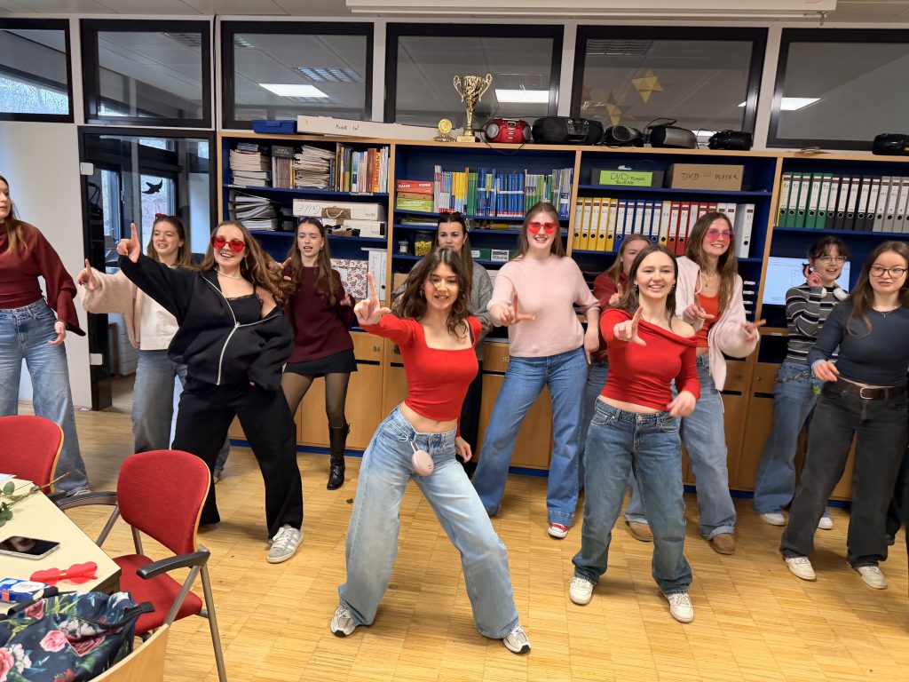 Traditionell übernimmt der 13. Jahrgang die Rolle des Amor und verteilt die Rosen – mal mit, mal ohne persönliche Botschaft – an Schüler:innen und Lehrkräfte. In diesem Jahr wurde die Aktion sogar mit besonderen Tänzen, musikalischer Begleitung und farblich abgestimmten Outfits aufgewertet. Wenn die Prüfungsvorbereitungen genauso sorgfältig laufen, kann das Abi ja kommen!