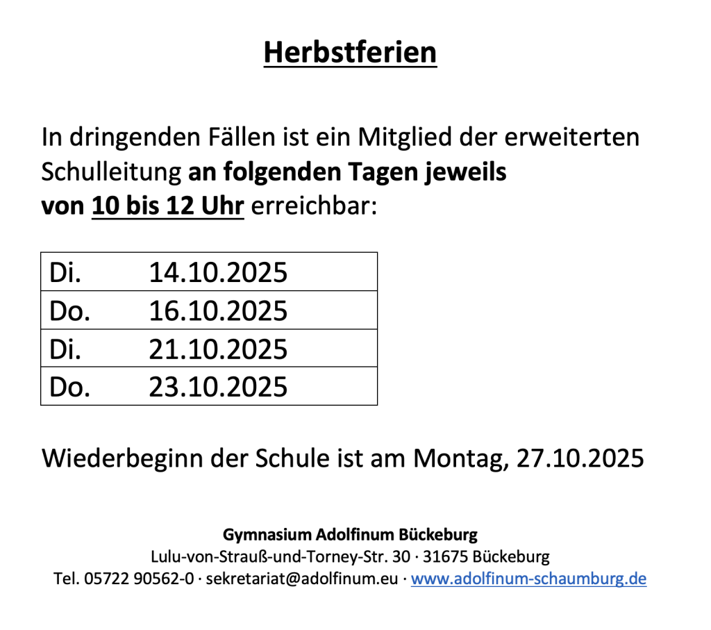 Mitteilungen der Schulleitung Erreichbarkeit in den Herbstferien von Lara Dübner 10. Oktober 2025 10. Oktober 2025 141