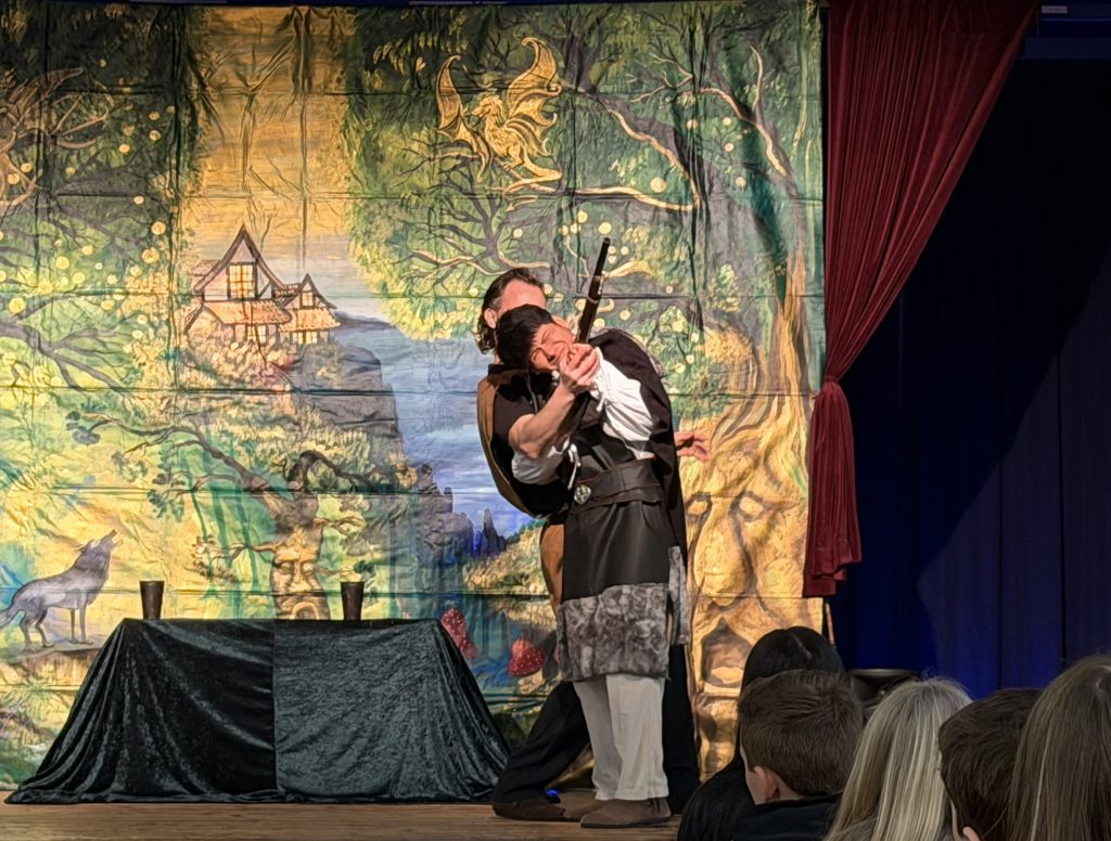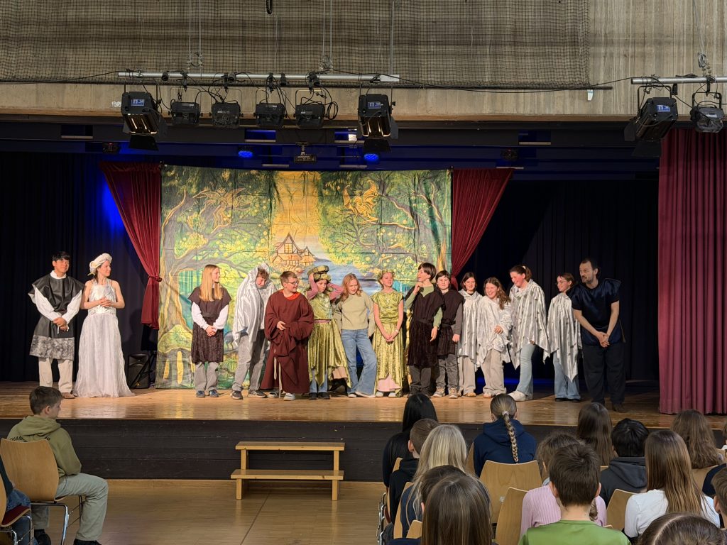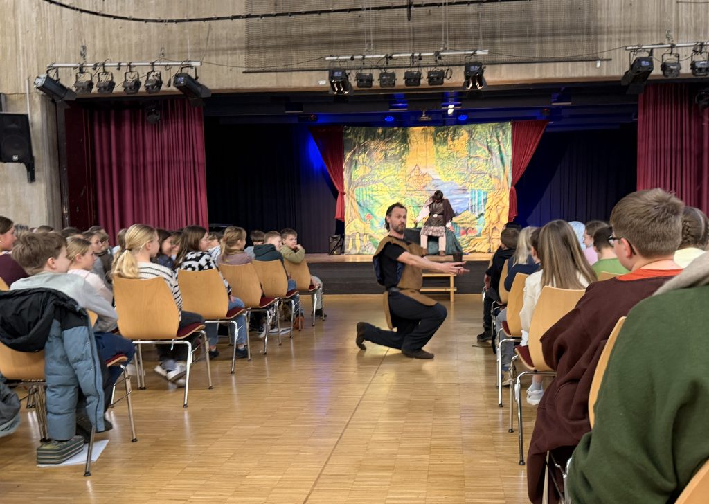 Mit eindrucksvollen Szenen – von der spannungsgeladenen Wolfsschlucht bis zu den gefühlvollen Arien – gelang es dem Drei-Personen-Ensemble, die romantische Oper lebendig und altersangemessen zu vermitteln. Seit 2021 gastiert das Ensemble regelmäßig an unserer Schule und ermöglicht es, Oper hautnah zu erleben – mit Gastauftritten aus den eigenen Reihen! Die Schülerinnen und Schüler hatten sichtlich Spaß dabei, in Nebenrollen am Stück mitzuwirken.