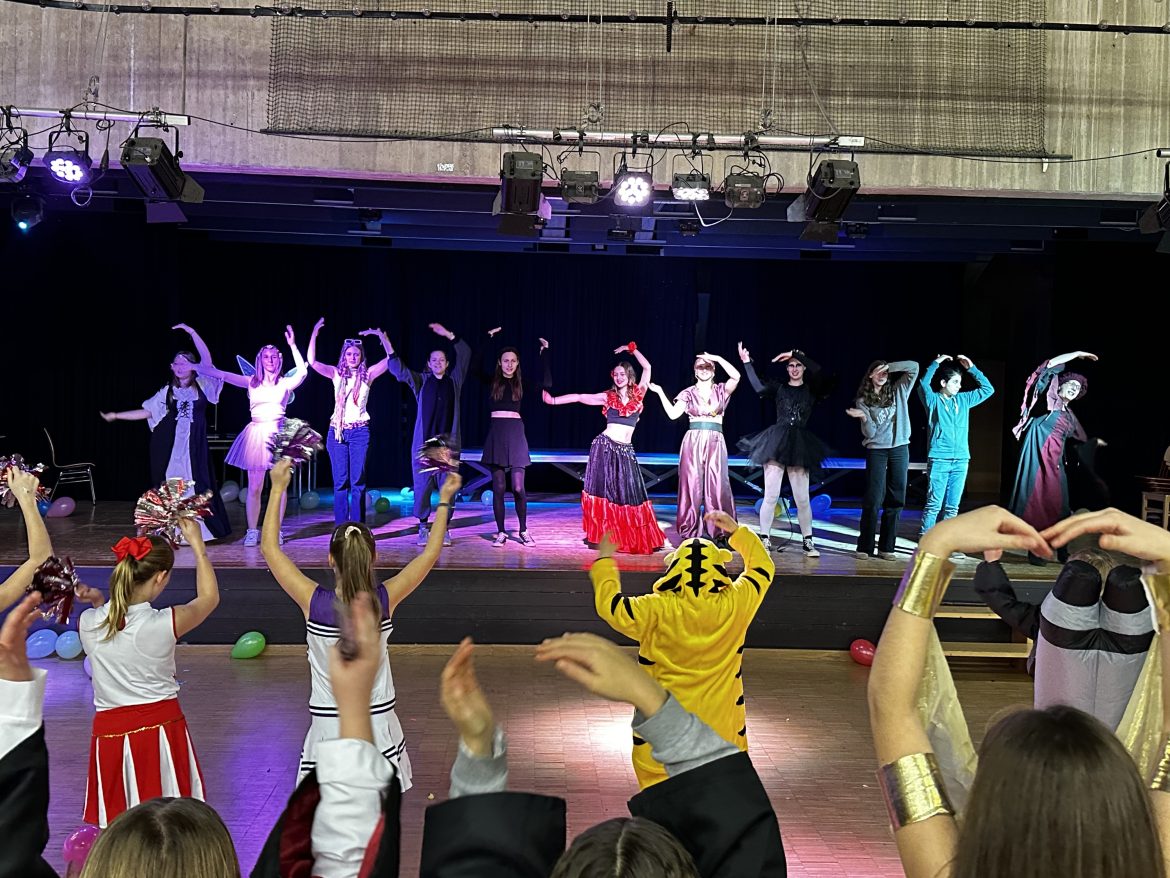 Bei so vielen kreativen Kostümen hatte die Jury keine leichte Aufgabe, das Siegerkostüm auszumachen. Also entschieden die Dezibel: Die einzelnen Klassen schickten ihre beiden Klassensieger auf die Bühne und das Kostüm mit dem lautesten Applaus – die Fantasygestalt einer Feuerkönigin – gewann.
